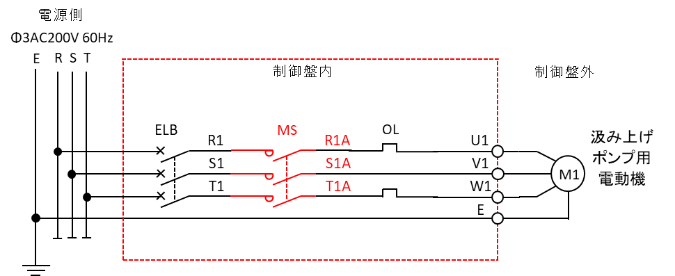 Ngược lại, khi nhấn nút dừng (PB2, thường đóng) trong mạch điều khiển 24V, mạch tự giữ bị cắt, cuộn hút RY1 mất điện, dẫn đến tiếp điểm RY1 thường mở mở. Điều này ngắt nguồn 100V đến cuộn hút MS, khiến các tiếp điểm lực MS mở, cắt nguồn điện ba pha đến động cơ, và máy bơm dừng hoạt động.
